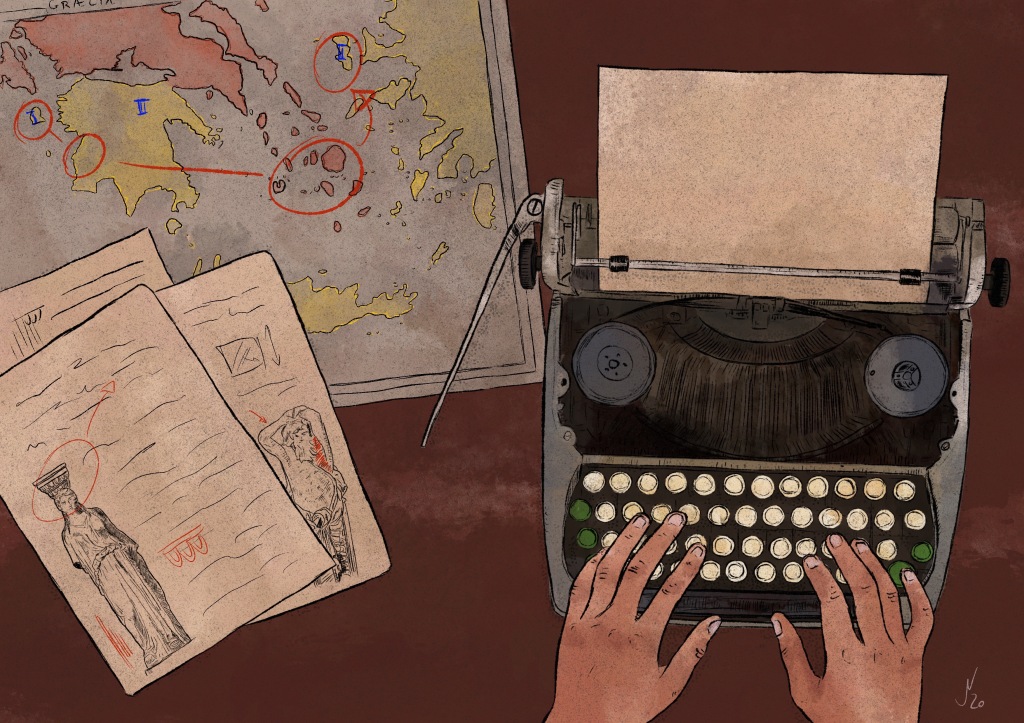 Illustrationsserie zur Entwicklung wissenschaftlichen Publizierens für einen Beitrag über den „Archäologischen Anzeiger“ und das neue Lense Viewer-Format in „Archäologie Weltweit“ 1/2020, das Magazin des Deutschen Archäologischen Instituts.