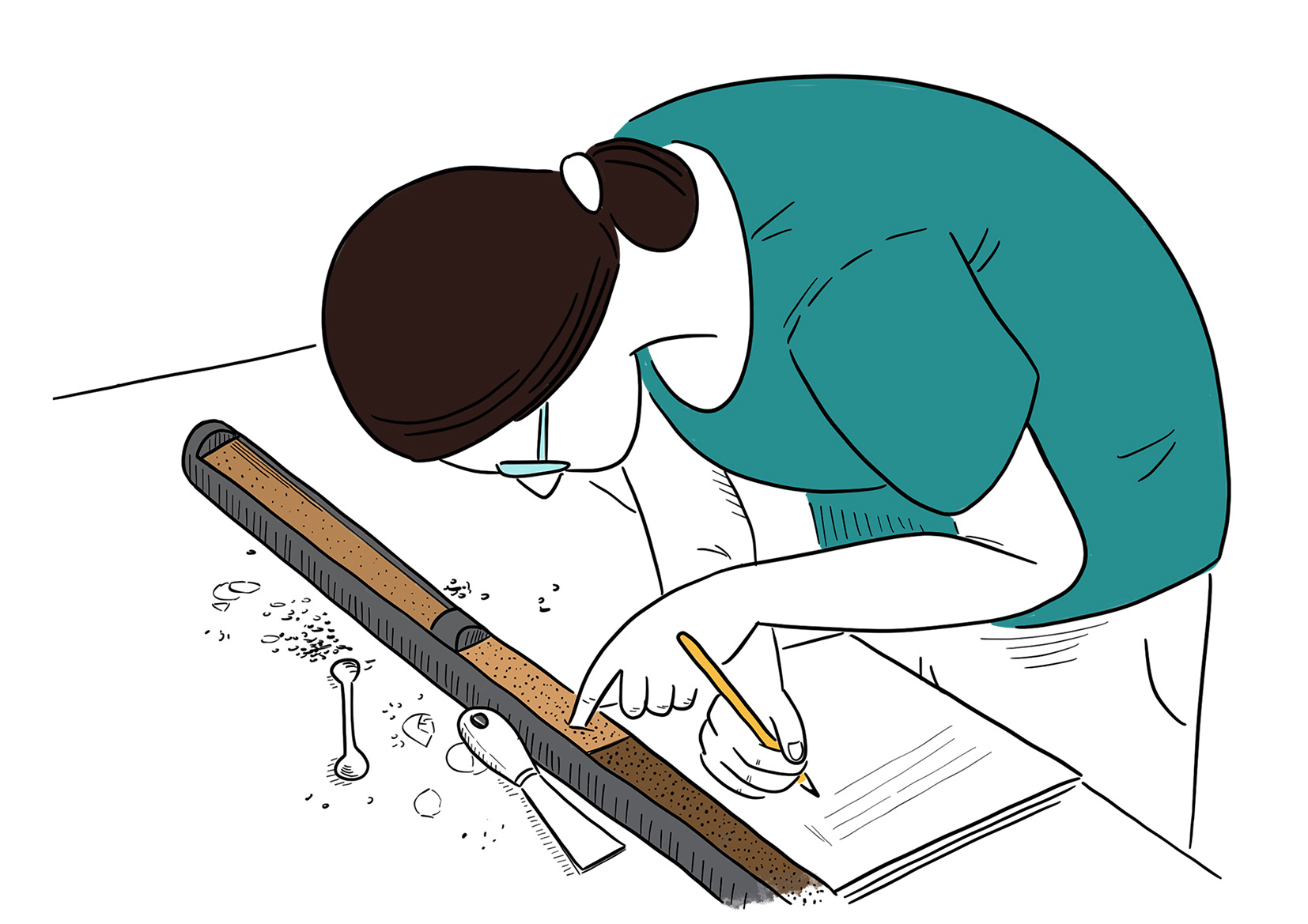 Illustrations of archaeological field work for „Auf den Spuren der Zeit“ by Christoph Cadenbach for Süddeutsche Zeitung Magazin (30.09.2021).