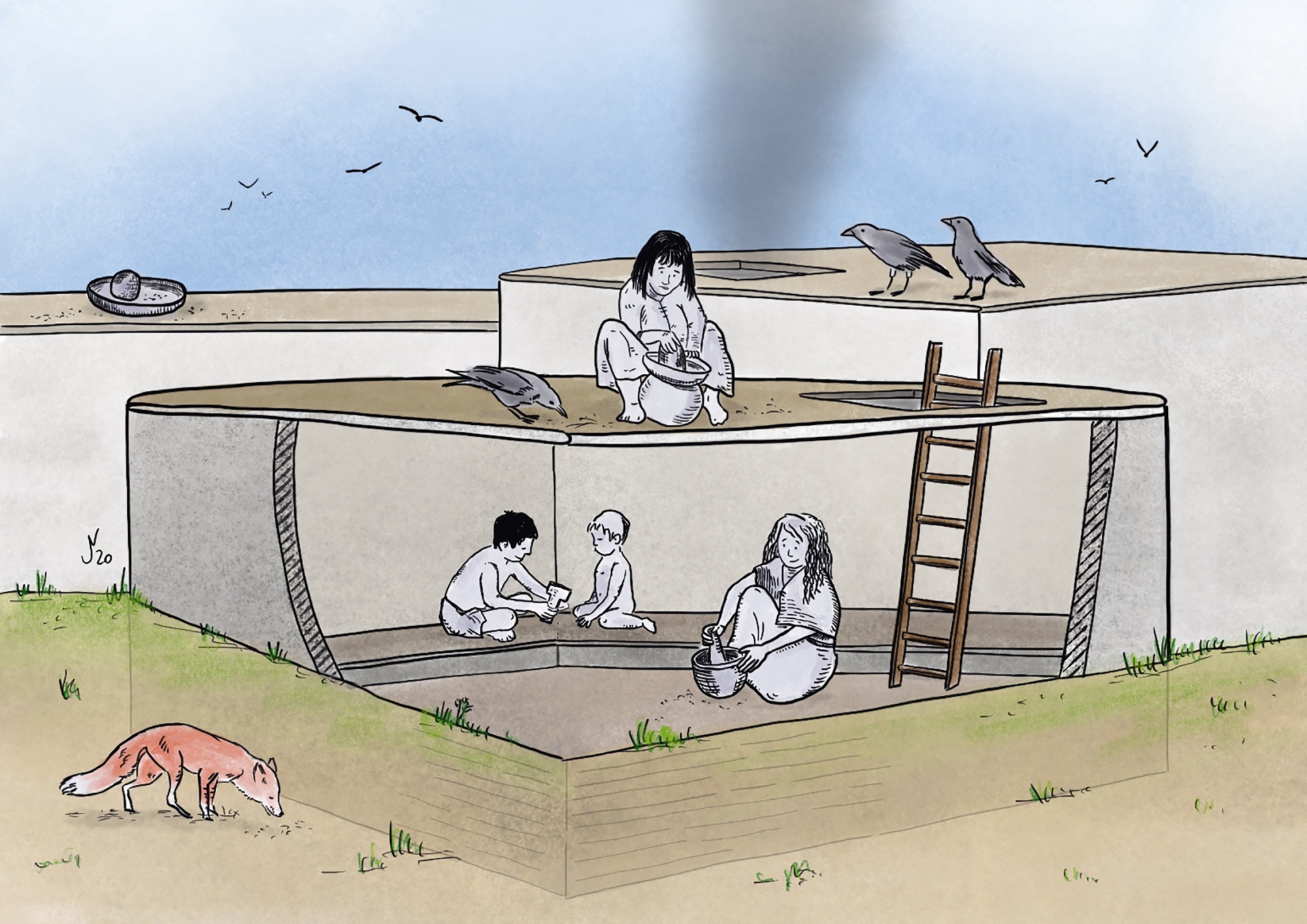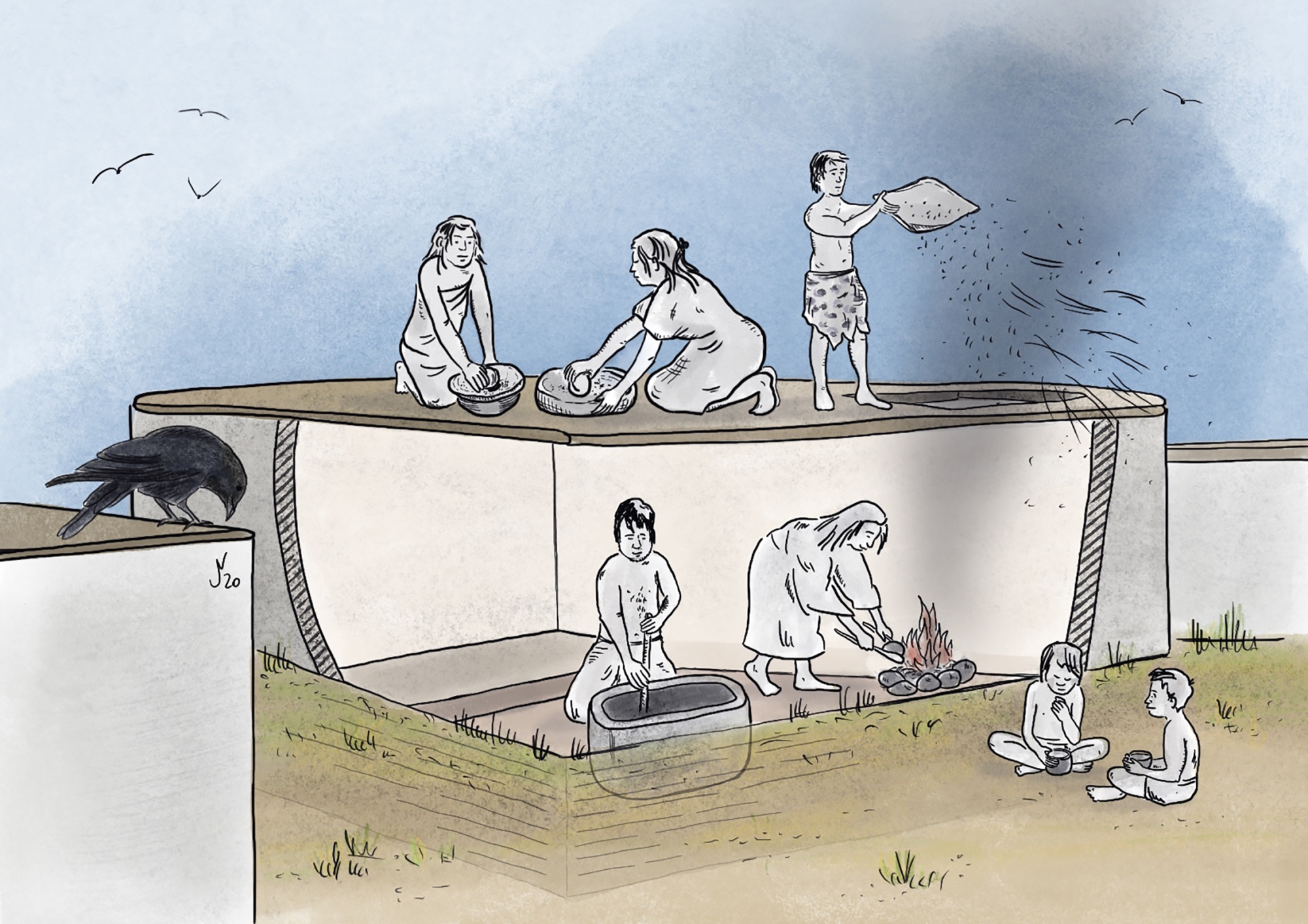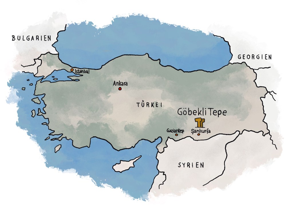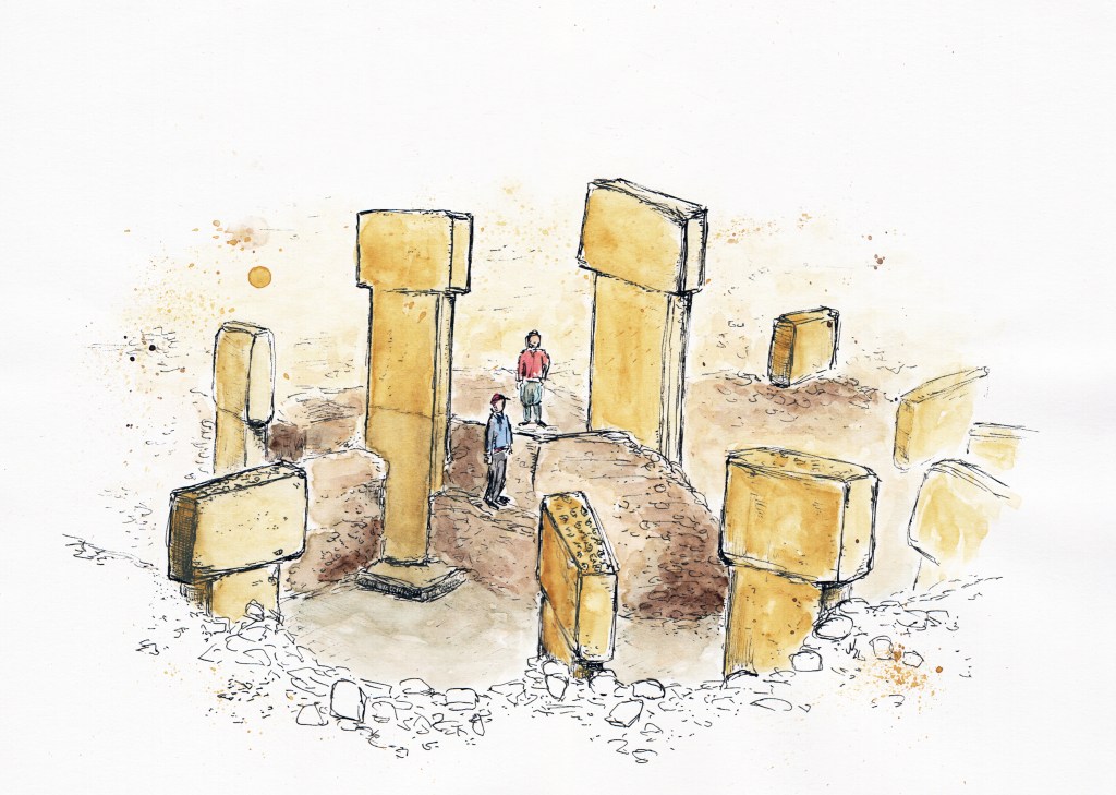 Illustrationen zur Verarbeitung von Nahrung auf den Dächern des frühneolithischen Göbekli Tepe (Türkei) und von Rötel-Farbpigmenten im Kontext ritueller Aktivitäten vor Ort für L. Dietrich, Plant Food Processing Tools at Early Neolithic Göbekli Tepe, Summertown: Archaeopress 2021.