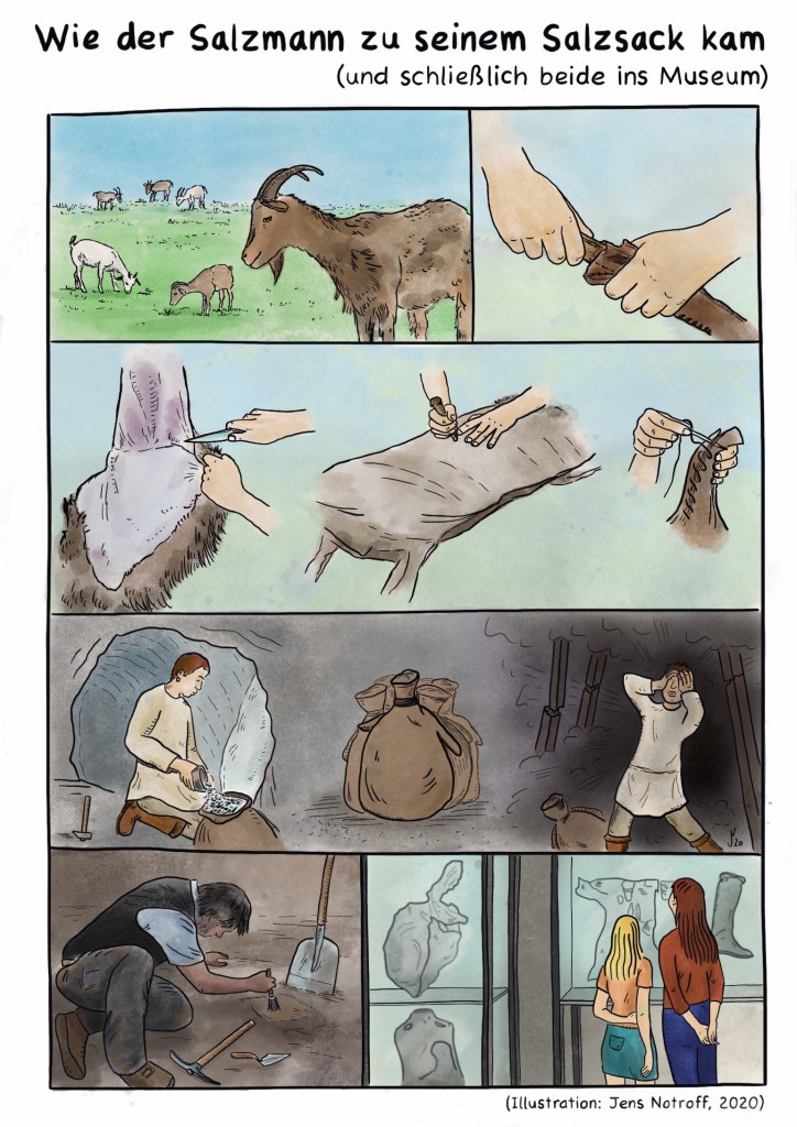 Begleitende Illustrationen und Infografiken für die Sonderausstellung „Tod im Salz“ des Deutsches Bergbau-Museum Bochum zu Funden aus den Chehrabad-Salzminen im Iran (2021).