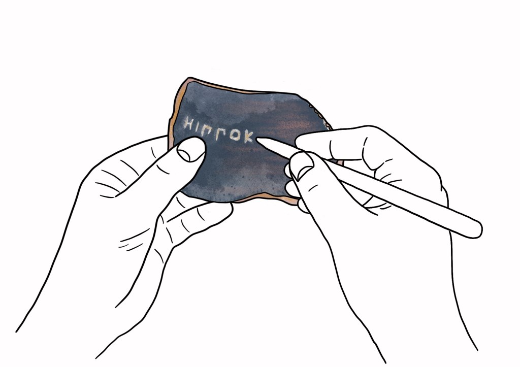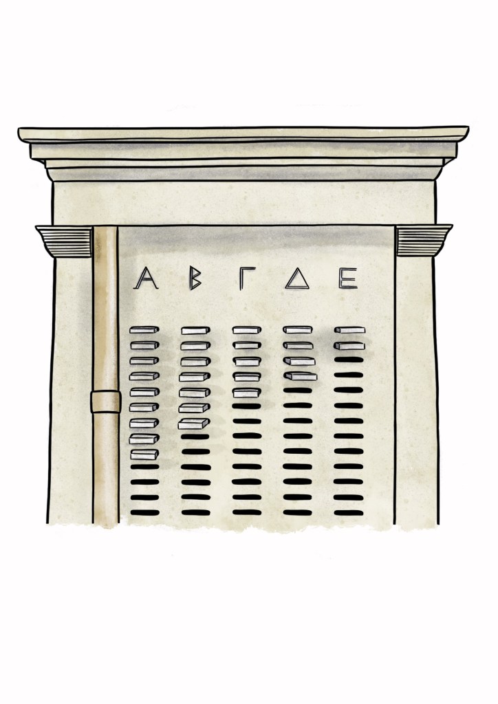 Illustrationen zur Rolle demokratiesichernder Maßnahmen im antiken Griechenland zur Gestaltung eines Informationsstandes des Deutschen Archäologischen Instituts auf dem Demokratiefest zur Feier des 75. Jahrestages des Deutschen Grundgesetzes.